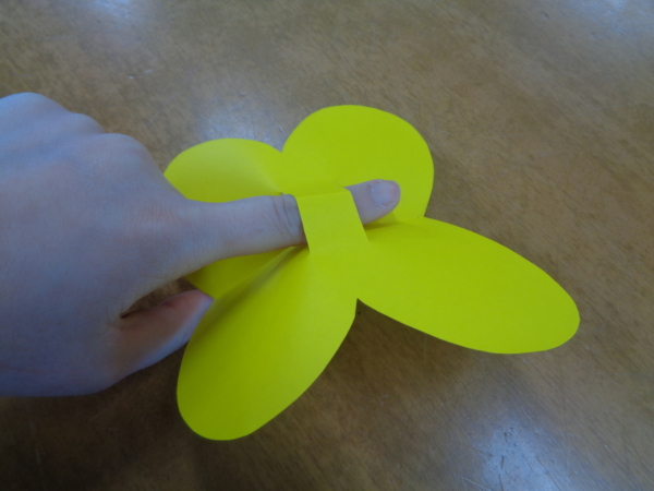 1.好きな折り紙を半分に折り、好きなちょうちょの線を書きます