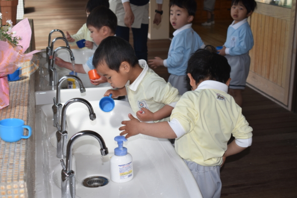 手洗いうがいをして