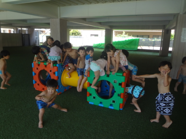 いつもとは違う滑り台や浮き輪があって喜んでいました(#^.^#)