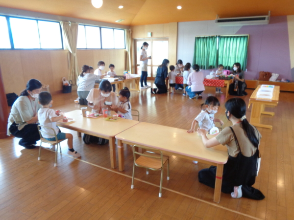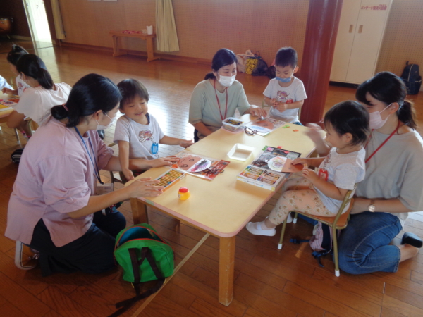 好きな色のクレパスで「どんぐりの帽子」を描きましたよ。