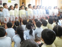 一部と二部に分かれて歌をうたったのですが、どちらのクラスも負けじと大きな口を開けて頑張っていましたよ♪
