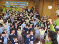 4クラス合同の歌の発表会を行ったのですが、みんな遠藤先生の指揮を見て大きな口を開け歌っています♪この後、一部と二部との対決をし、盛り上がったみたいですよ(●^o^●)