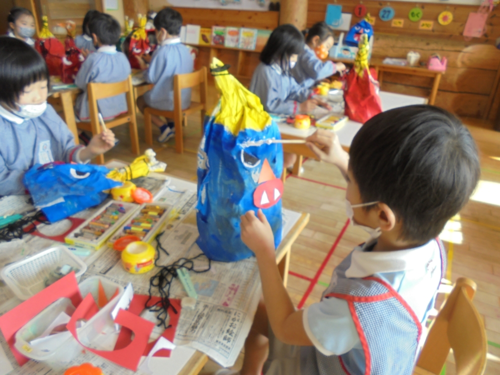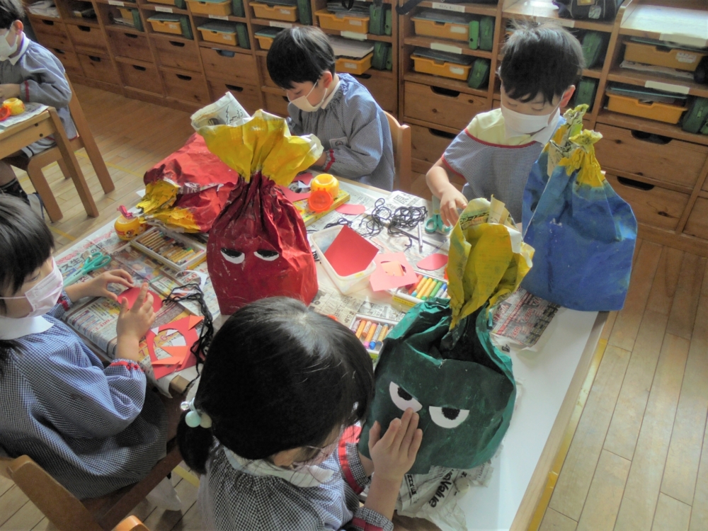 2月にある節分に向けて鬼のお面を作りましたよ。
