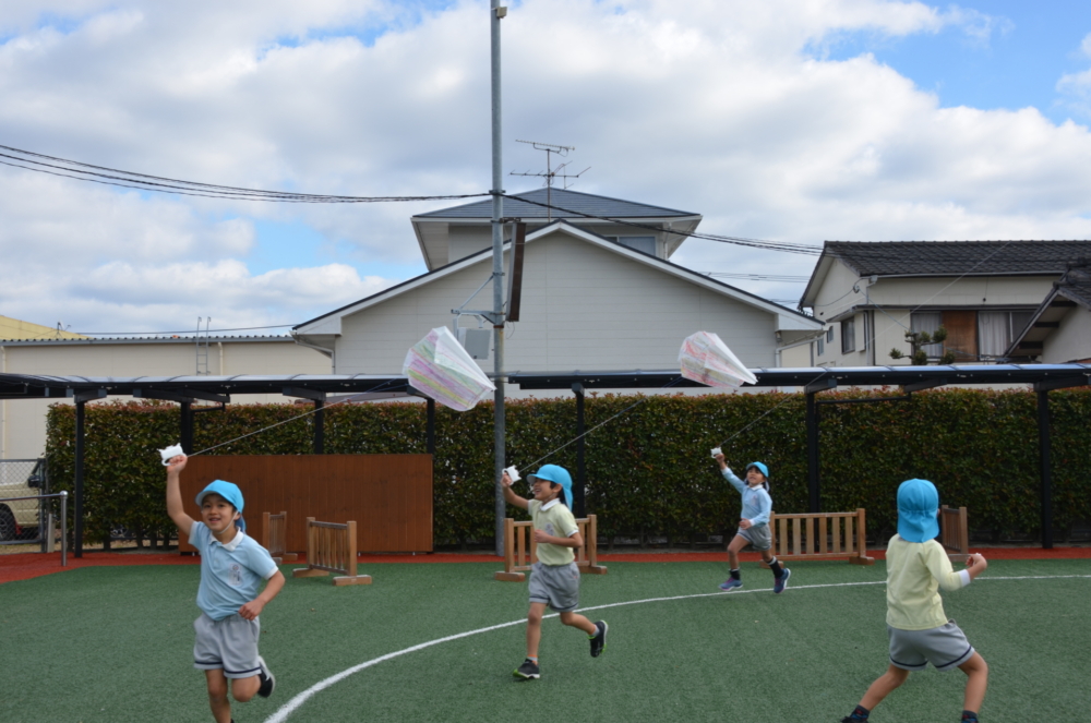 「やったー!飛んだ!」「めっちゃ高く揚げよう!」