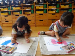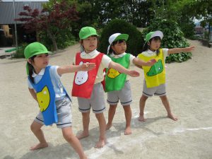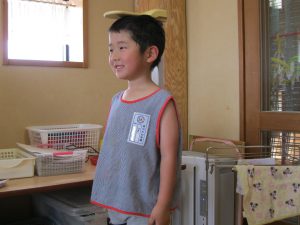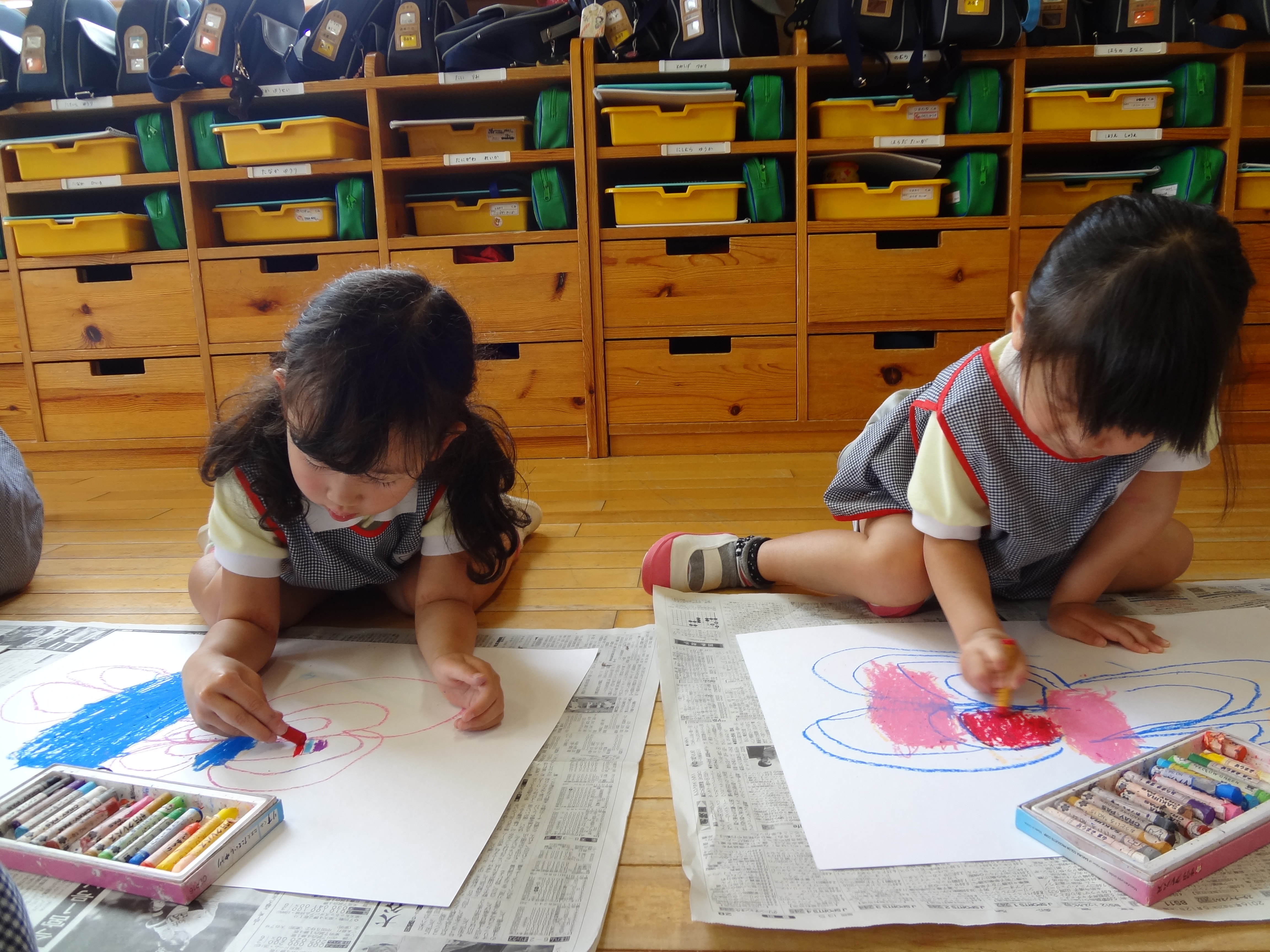 年長が先日植えた朝顔に水やりをしていました(^^♪