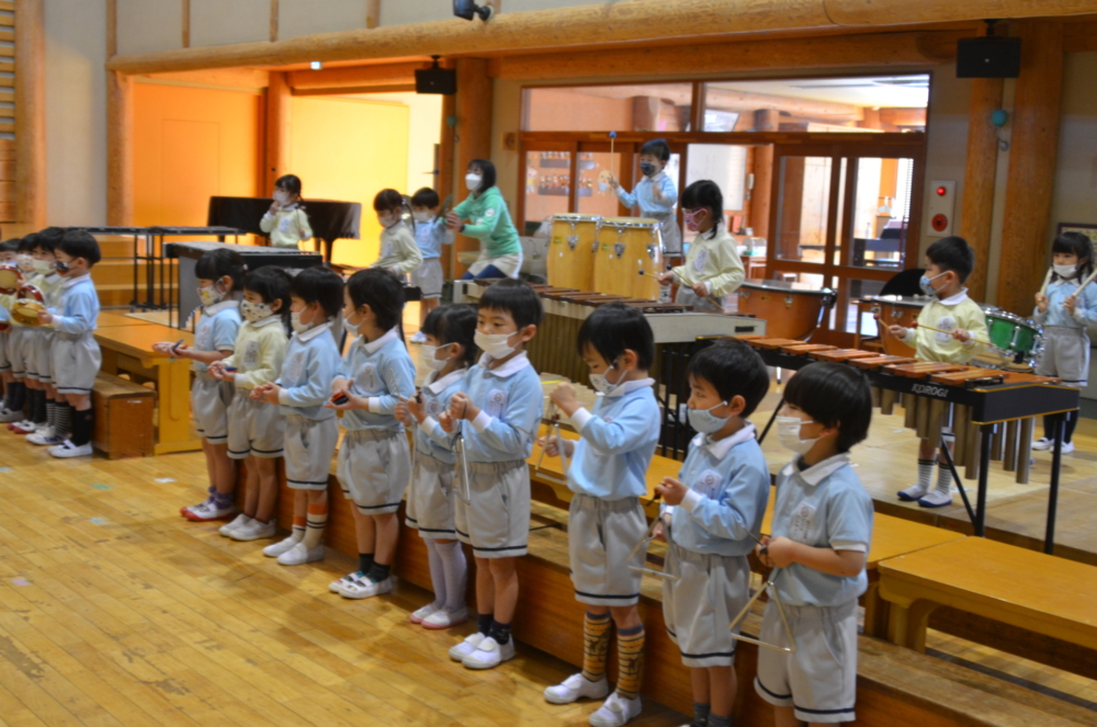 年少の合奏をしている声や楽器の音が聞こえてきます。