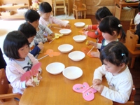 おやつを出していると興味津々の子ども達!!「先生、これ食べる?」といつの間にか子ども達が集まっていました。椅子にも上手に座ることが出来ましたよ。