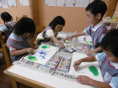 きりん組はパスとスポンジを使って