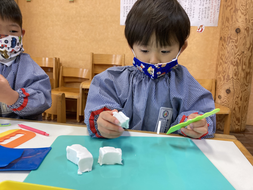 粘土の感触を楽しんでいました。