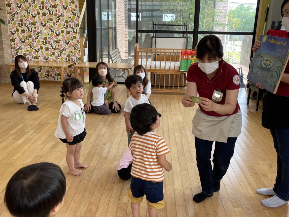 大型絵本『そらまめくんのベッド』の読み聞かせ。