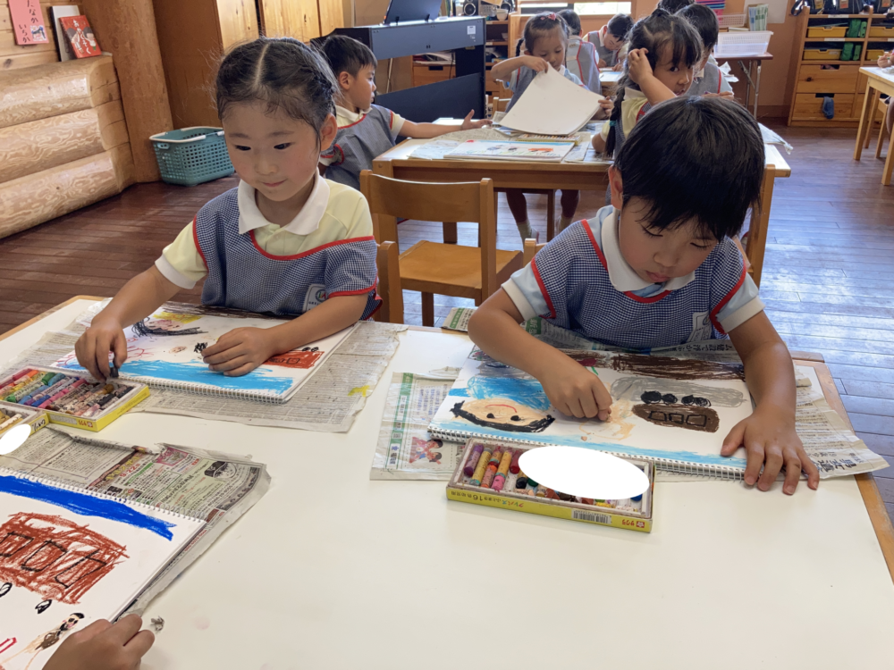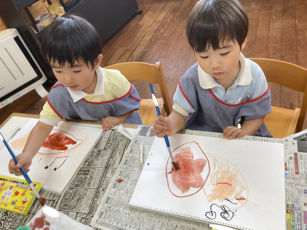 年少は、昨日の続きで「虹色の魚」を作りました。