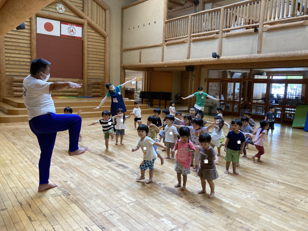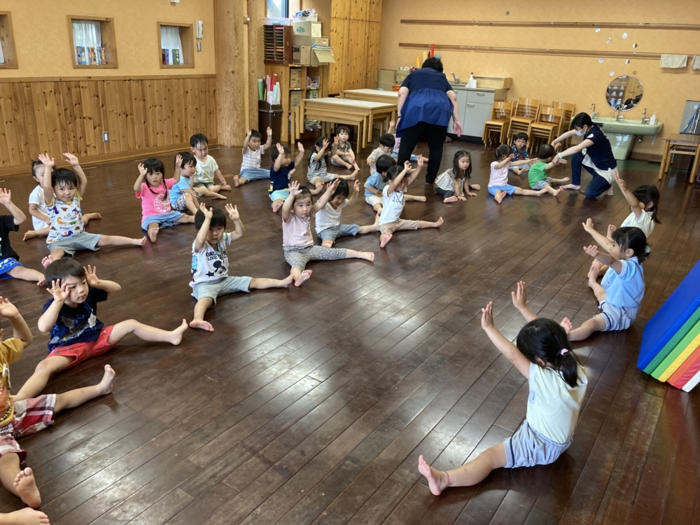 広いキンダーホールでサーキットをして沢山体を動かしています!