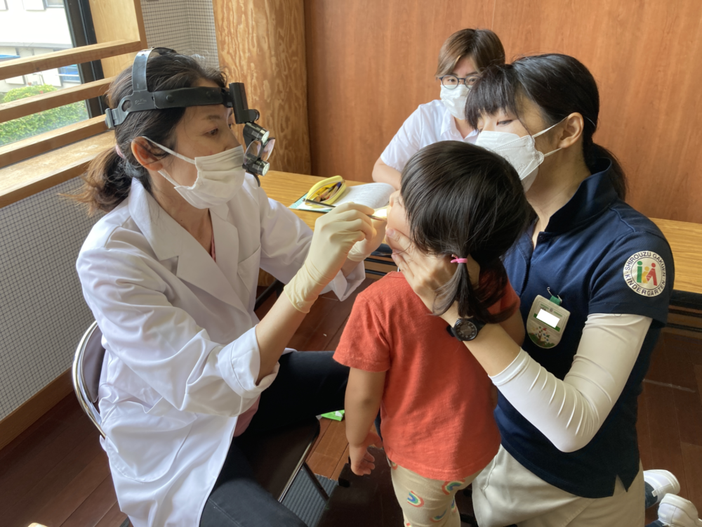 歯磨きの話を聞いた後は、歯科検診へ!