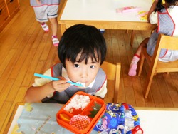 ひかり組はシートを広げて食べていましたよー!