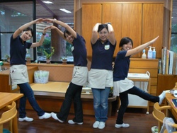学年毎でも、年長はバルーンやマーチング、年中は組体操、