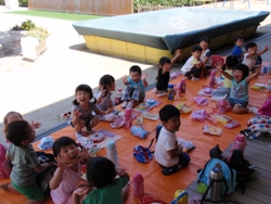 外での昼食は、初めてだったので、大喜びの子ども達でした。お家からのお弁当がいつも以上に美味しかったようですぐに食べ終わっていましたよ。