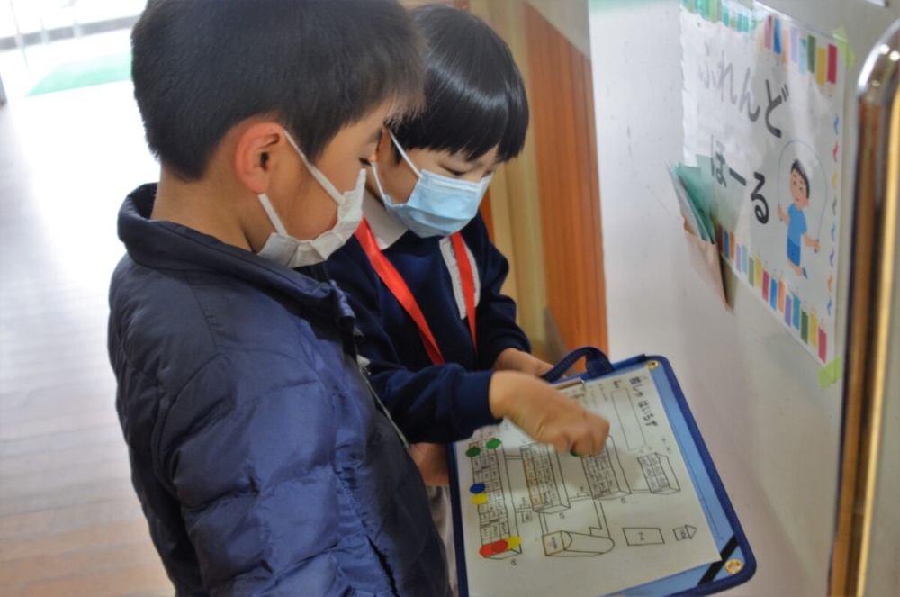一年生が作ってくれたおもちゃで競争をしたりして遊びました。