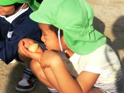 給食も食べ終え、お腹も満たされた子ども達ですが、「じゃがいも食べに行くよ!」「いえ~い!!」とかなりハイテンション!入るかな!?