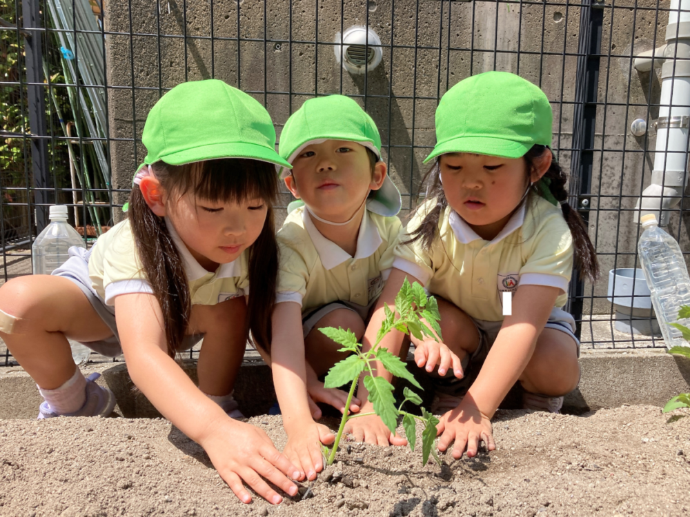 みんなでトマトの苗を植えました。