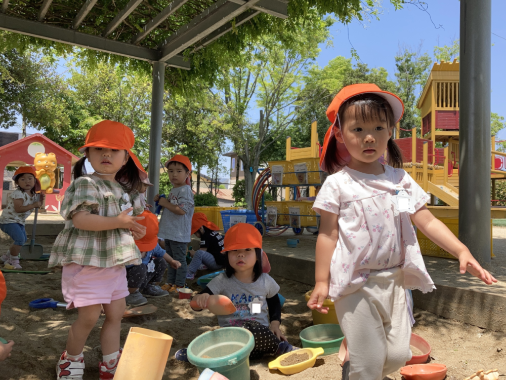 砂場で遊びました。
