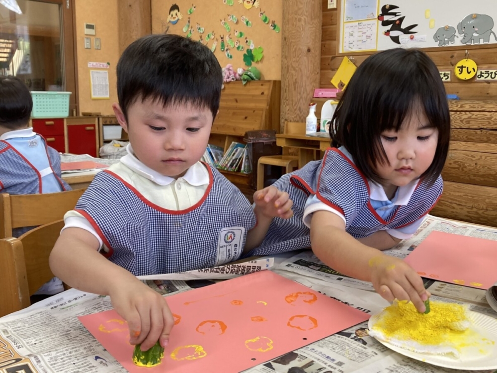 いつも食べている野菜でスタンプができることに初めはびっくりしていましたが、