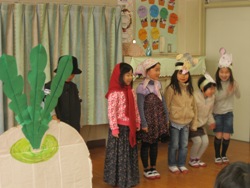 「おおきなかぶ」の劇など1年生の発表を真剣に見ていたのです。
