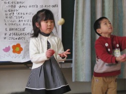 1年生とお手玉、こま、折り紙、けん玉などの昔の遊びをしましたよ(^o^)丿