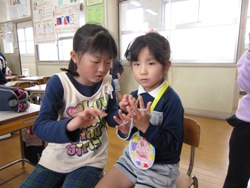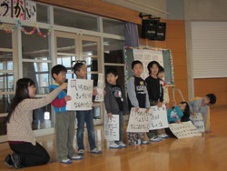 クイズでは、「お勉強はいくつあるか?」「給食の時の飲みものは何が出るか?」などなど・・・子ども達は、当たるととても大喜びしていました\(^o^)/