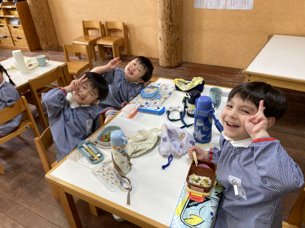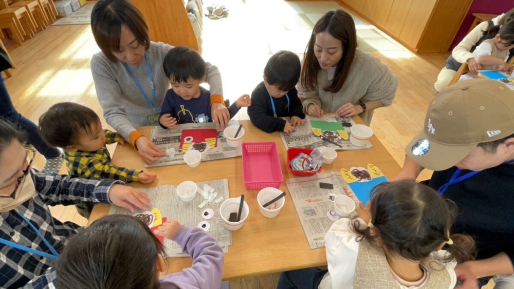 できあがった鬼のお面を嬉しそうにつけていました☆