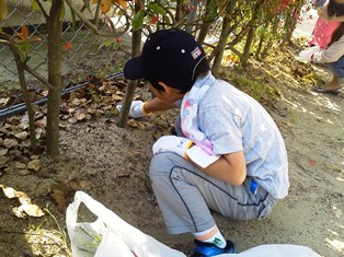小学校内や周辺を掃除しました。