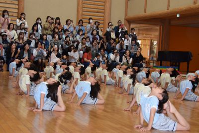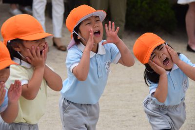 まねっこ体操では「おーい!」と力いっぱい声を出し、