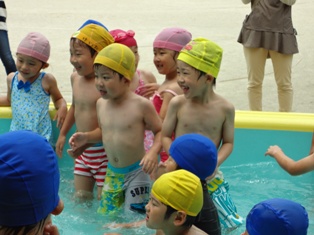 昨日は雨で水遊びが中止となり今日は一段とハイテンション!