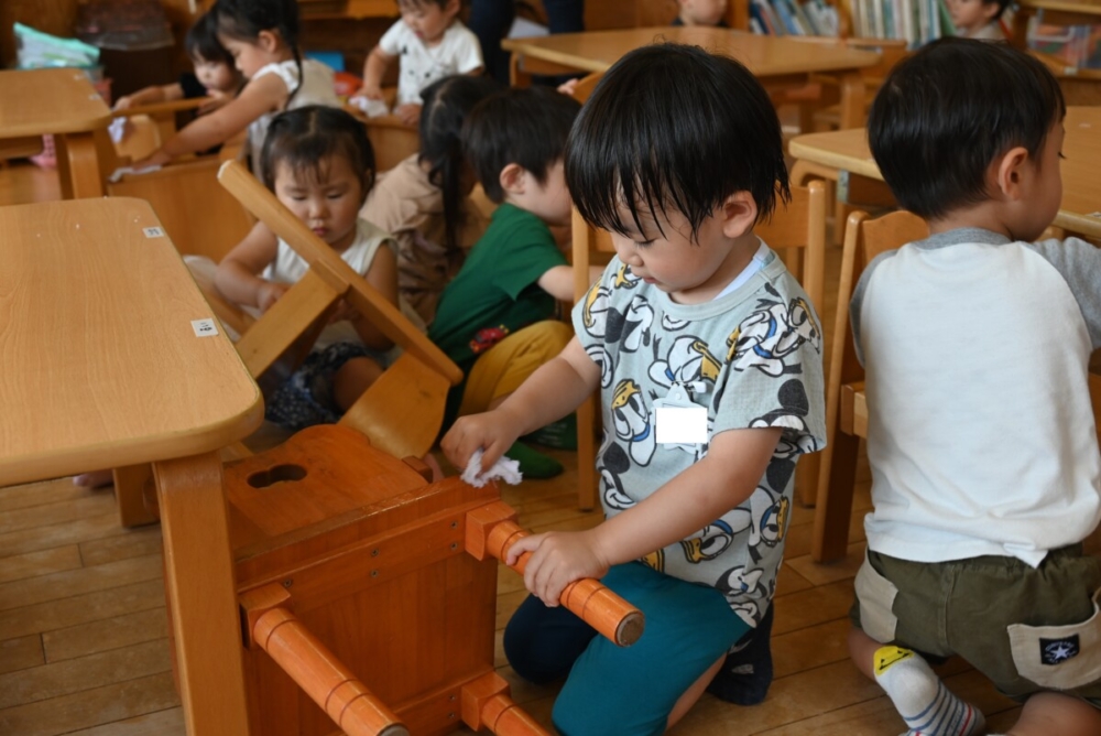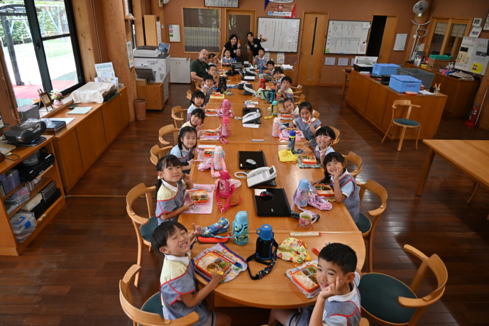 給食だけでなく、園長先生に職員室紹介をしてもらったり、