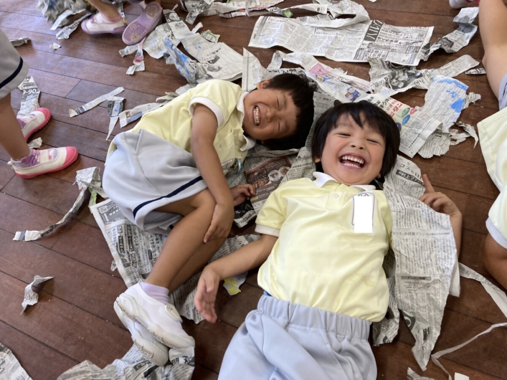 新聞等を使い、とても楽しく遊んでいましたよ。