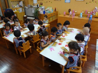 今日は、動物で男の子が「くま」、女の子が「うさぎ」を作りました。
