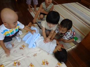 昼寝をしていない子は、仲良く遊んでいます。