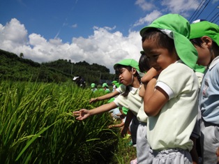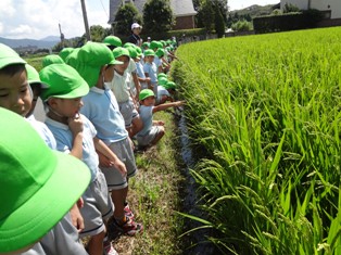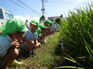 今日は、年長の子ども達全員で6月に田植えをした田んぼに見学に行ってきました!