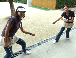 この紐は、ラインを引く時や椅子体操の椅子を並べる時に重要なのです。