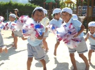 最初は「ポンポン持ちたくない~」と言っていた男の子も、曲が流れると