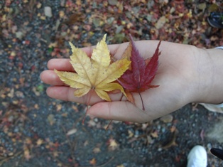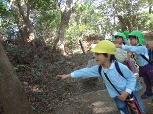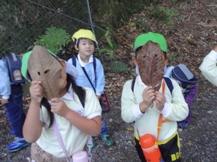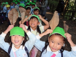 実際に登り始めると、どんぐりや落ち葉拾いに夢中の子ども達。