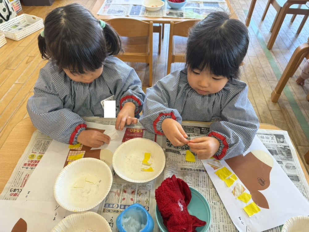 たてがみをのりで貼り付けていました。