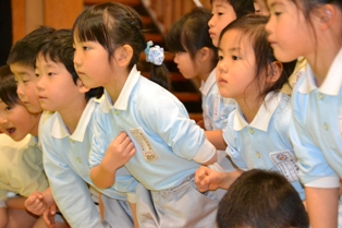 キンダーホールに入っていざ年長の姿を目にすると圧倒されていました。