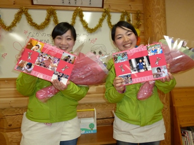 職員から、花束とメッセージカードのプレゼント!