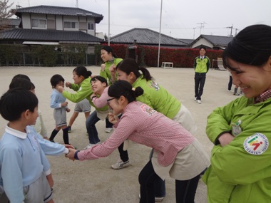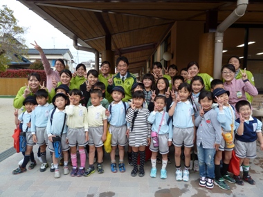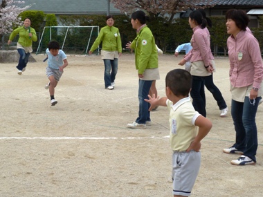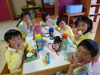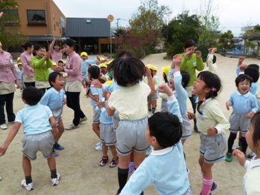 幼稚園へ帰ってきたら、お菓子をかけて先生達と