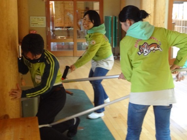 まずは、窓を拭く伊藤先生!