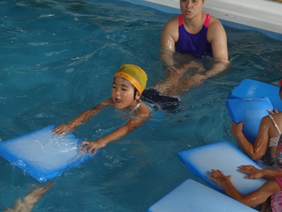 顔をつける練習をしたり、園にはない遊具で遊んだりと、