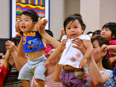 小さなお子さんも楽しめるように、音楽に合わせて体を動かしたり、