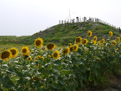 柳川ひまわり園というところがあり今、ちょうどひまわりが満開でした。