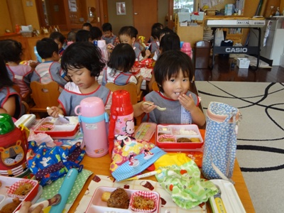 沢山遊んで今日は給食もいつもよりも早く食べていました(●^o^●)