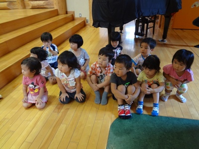 キンダーホールでお兄ちゃん、お姉ちゃん達が何かしていると